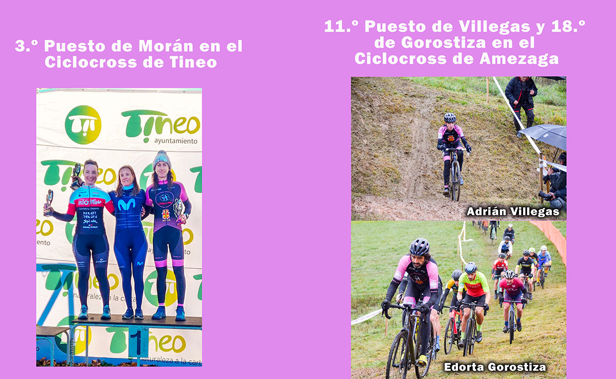 Tercer puesto para Cristina Moran en el ciclocrós de Tieno el pasado sábado; y en el ciclocrós de Amezaga de ayer domingo, Adrián Villegas duodécimo, y Edorta Gorostiza el décimo octavo
