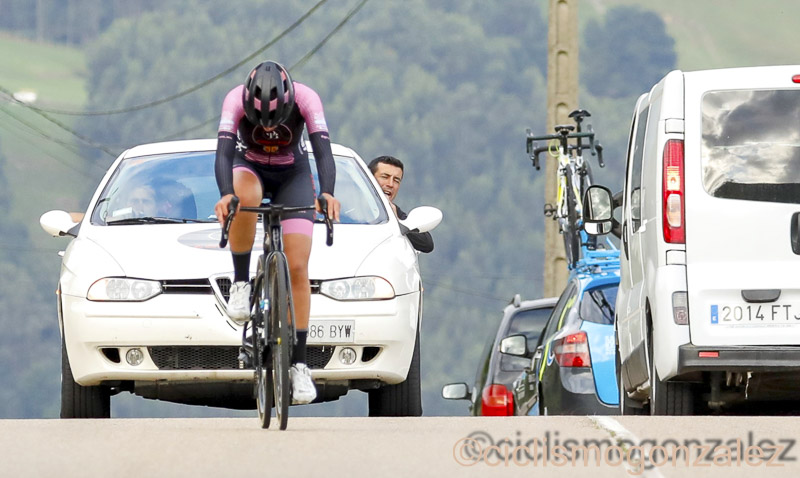 Joane Gorostiza después de estar casi dos meses en el dique seco, por la caída que tuvo en una de las pruebas de la Copa de España, volvió a la competición con algo menos de ritmo de carrera que sus compañeras de categoría, pero consiguiendo la décimo cuarta posición en la general de esta Vuelta a Cantabria y cuarta cántabra.
